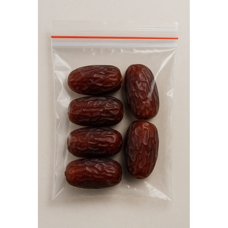 Bu kilitli poşetler yalnızca hurma değil, lokum, küçük taneli gıdalar, hediyelik ürünler, takı, boncuk, tesbih gibi birçok küçük eşyanın güvenli şekilde paketlenmesi için de uygundur. Hem kişisel kullanımda hem de toplu dağıtımlarda ekonomik ve pratik bir çözümdür.